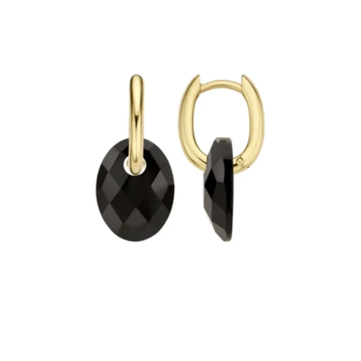 Hou je van speels en stylish? Dan zijn deze natuurstenen oorbedels iets voor jou. De ovaalvormige bedels zijn gemaakt van zwarte onyx met facetslijpsel. Ze zijn 20 mm hoog en passen om oorringen met maximaal 3 mm doorsnede. Prachtig samen met gouden oorbedels van Blush.