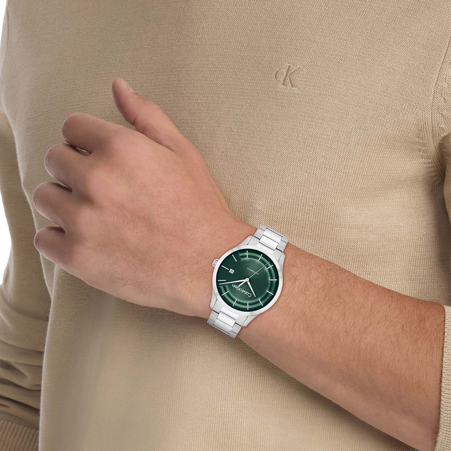 Dit Calvin Klein horloge heeft een kast gemaakt van Roestvrijstaal met een diameter van 40 mm en is voorzien van een metalen band. In de kast bevindt zich een Seagull kwaliteitsuurwerk en is afgewerkt met Mineraalglas.
