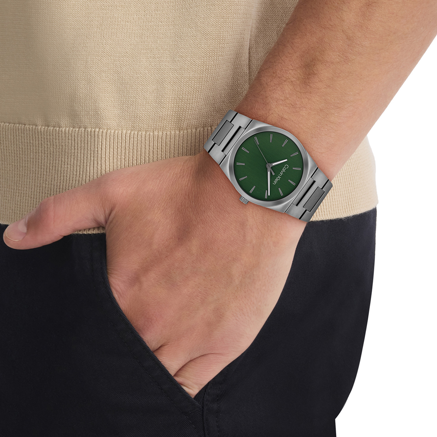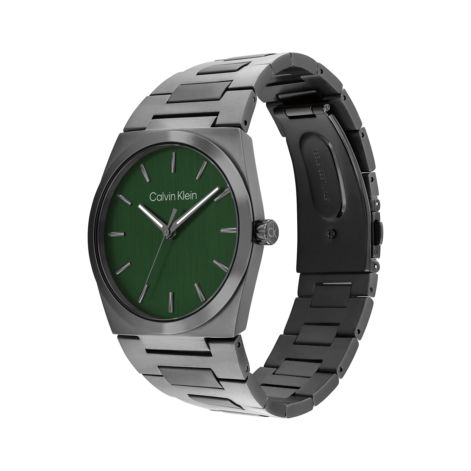 Dit Calvin Klein herenhorloge met nr CK25200545 heeft een stijlvol uiterlijk. Het gunmetal stalen horloge heeft een ronde kast met een groene wijzerplaat met fijne wijzers ingelegd met lumibrite. Aan de kast zit een verfijnde gunmetal schakelband. Het horloge heeft een mineraalglas, een doorsnee van 40mm en is 3ATM.
