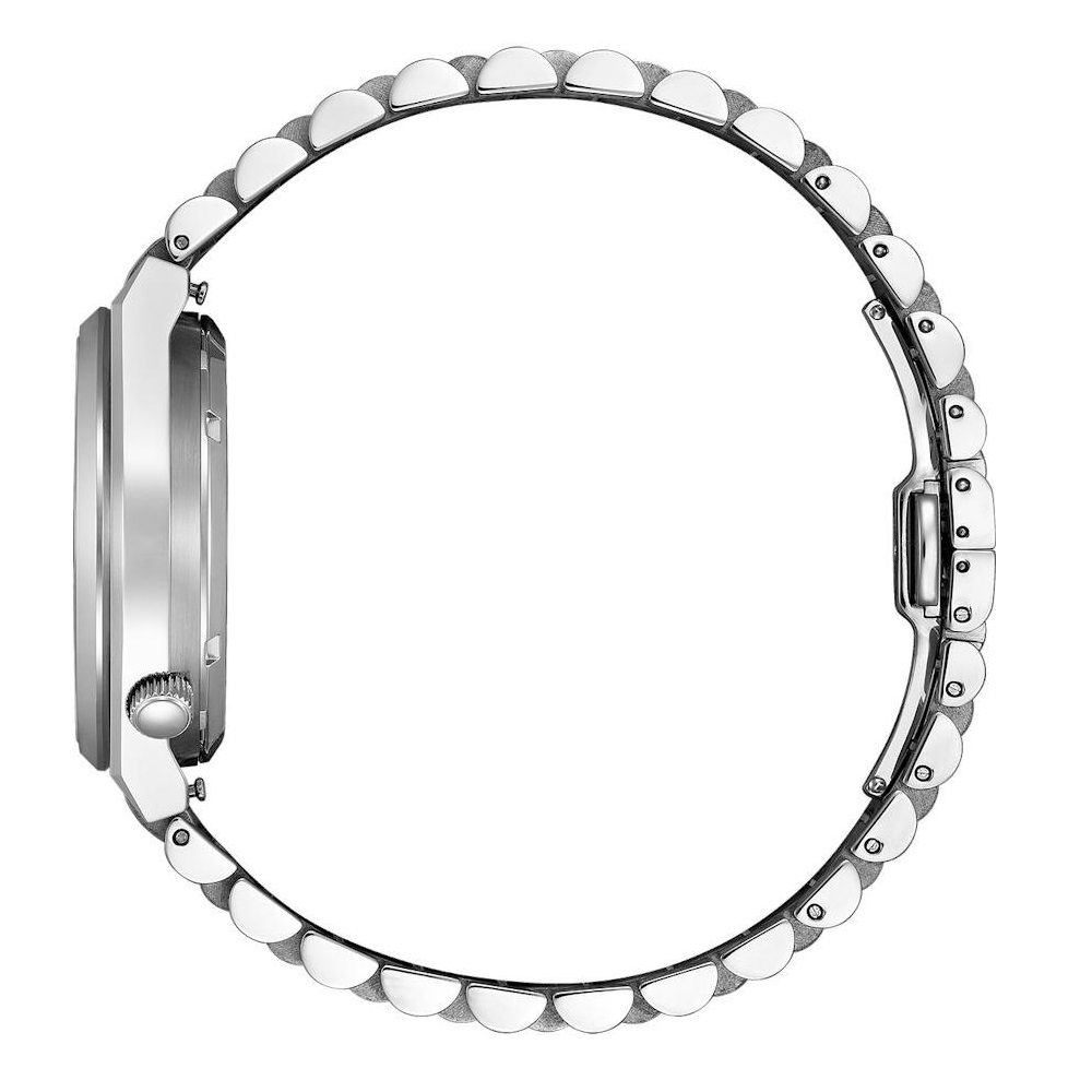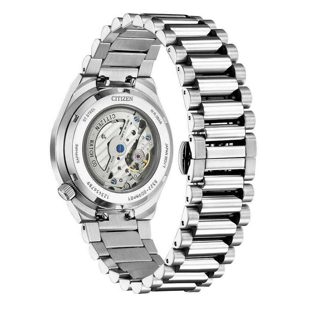 Het Citizen Tsuyosa NK5010-51L automatic heren horloge is uitgerust met een mechanisch uurwerk, energie uit beweging. Het Citizen automaat horloge heeft een zilverkleurige edelstalen kast en band. Het horloge heeft een gestructureerde blauwe wijzerplaat met decentrale secondewijzer, krasvast saffierglas en is tot 5 atm waterdicht. Hoewel ieder automatisch uurwerk zo nauwkeurig mogelijk wordt afgeregeld is een kleine dagelijkse afwijking normaal.