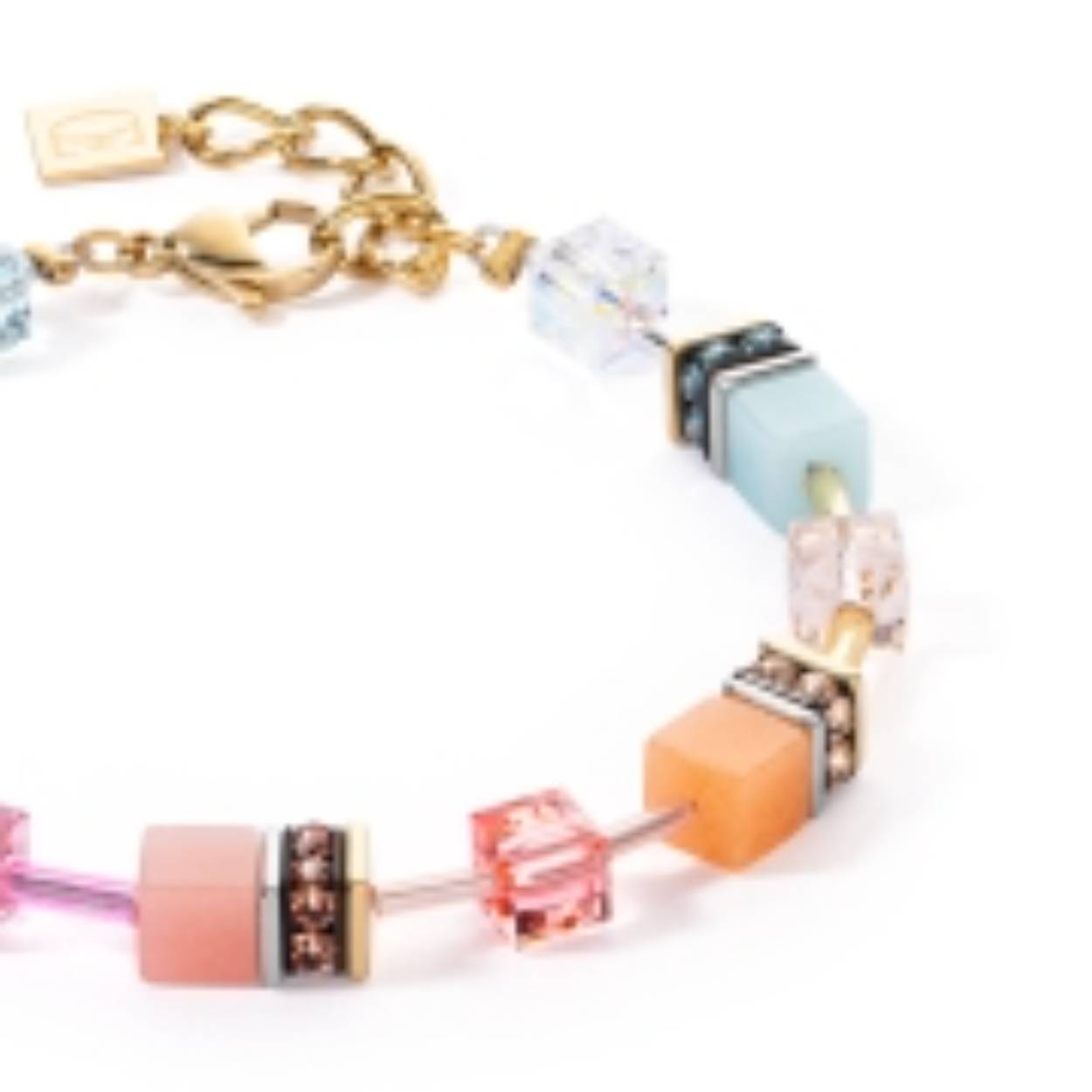 Coeur de Lion collier aquablauw, zacht roze en abrikoos kleur