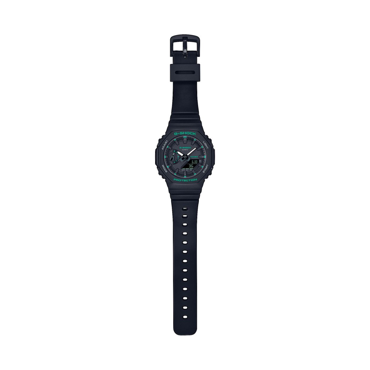 Ga stijlvol en comfortabel op stap met de slankere, compactere, analoog-digitale GMA-S2100 met moderne groene accenten. De platte kast en de eenvoudige wijzerplaatmarkering zorgen samen voor een fraai en gestroomlijnd ontwerp. Het horloge heeft originele details in modieus groen, zoals het logo en de streepjesmarkering. De combinatie met een lcd-scherm maakt dit horloge tot het perfecte straatmode-accessoire.