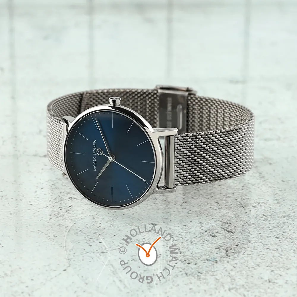 Dit Jacob Jensen horloge heeft een kast gemaakt van Titanium met een diameter van 32 mm en is voorzien van een metaal band. In de kast bevindt zich een Miyota kwaliteitsuurwerk en is afgewerkt met Saffierglas.