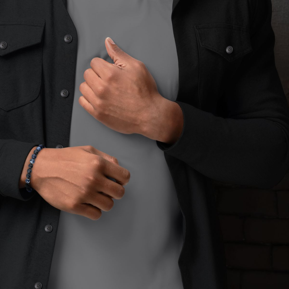 Edelstenen bead armband, handgemaakt van 8mm blauwe Sodaliet en blauwe Tijgeroog stenen met een zilverkleurige sluiting. Het Rebel & Rose sieraad is makkelijk te combineren met andere zilveren, leren of kralenarmbanden.