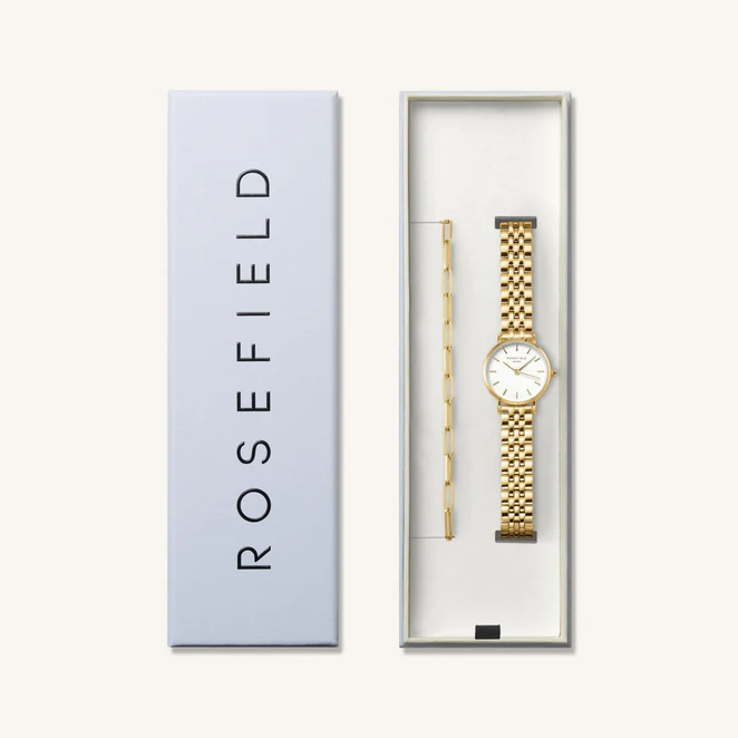 Cadeauset bevat de wit met goudkleurige Small Edit en de Hammered Chainlink Armband. Optioneel: Maak je cadeau speciaal met de cadeau verpakking die beschikbaar is in je winkelwagen.