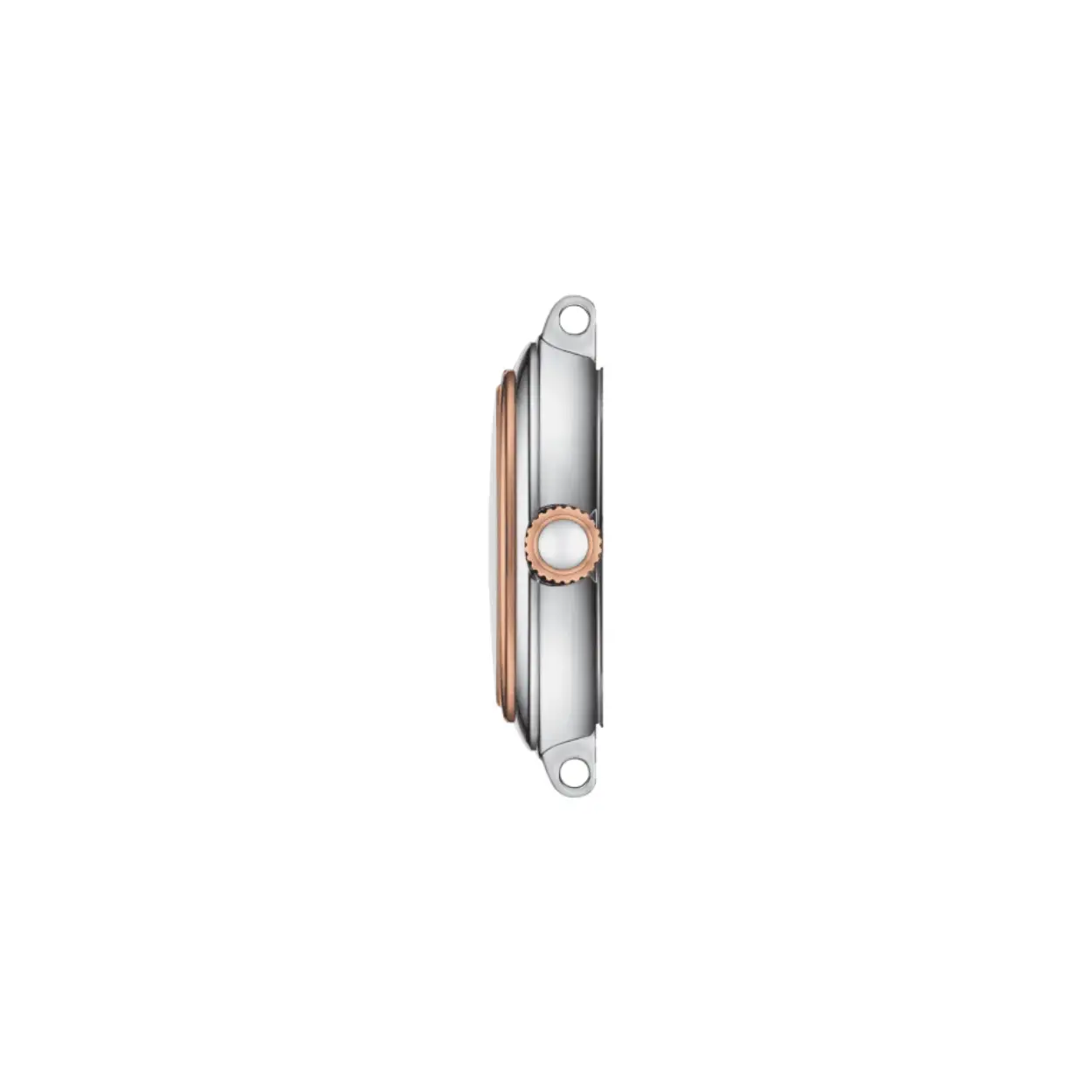 Klassieke ontwerpen komen niet tijdlozer dan de Bellissima Small Lady. De ronde kast en de vijfschakelige armband zijn van staal, met accenten in warm roségoudkleurig die het horloge zijn luxueuze uitstraling en veelzijdigheid van dag tot nacht geven. Het horloge heeft een zilverkleurige wijzerplaat met Romeinse cijfers en een prachtig guillochépatroon in de vorm van een roos, terwijl de oogverblindende witte keramische cabochon die in de kroon is gezet, het laatste detail is. Met deze elegante details zal de Bellissima Small Lady haar eraan herinneren dat je elke dag van haar houdt.